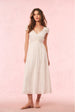 Introducing the Suvi Dress. This Victorian-inspired midi dress stuns with an airy cotton fabric printed with our new, playful confetti bloom print and features vintage-inspired laces all over. The dress begins with short cap sleeves above a v neckline that falls to an empire waist which releases into a sweepy, a-line skirt. There is tucking at the waist giving this piece a feminine silhouette. There’s smocking at the back for ease and comfort and includes pockets.
